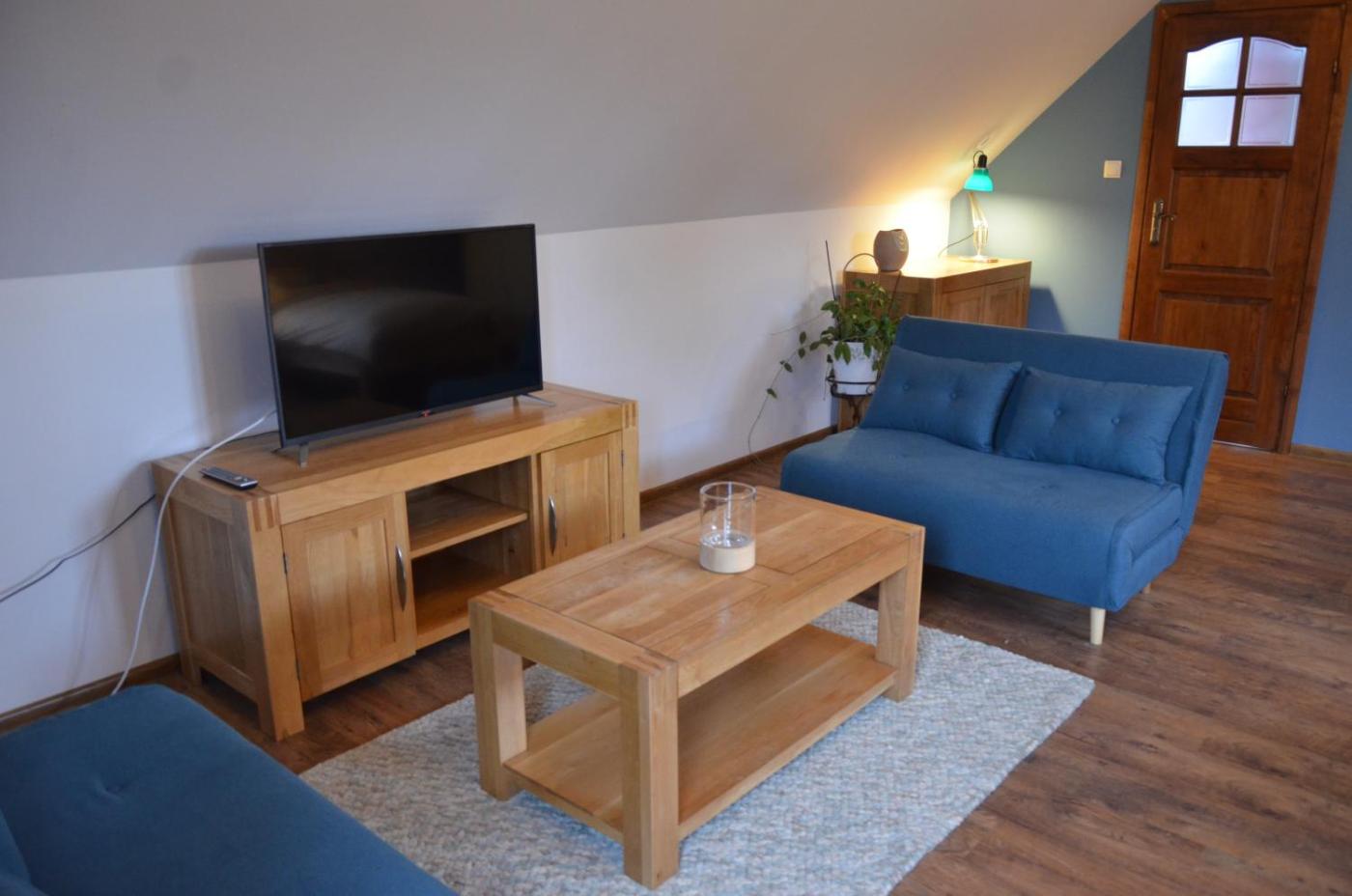 Pokój Czteroosobowy z łazienką. Guests will find a stovetop, a refrigerator, kitchenware and an oven in the fully equipped kitchen. The quadruple room also offers a barbecue. This quadruple room includes a flat-screen TV with streaming services, a private bathroom as well as a balcony with garden views. The unit offers 3 beds. Pokój Czteroosobowy - 5 osobowy. ;