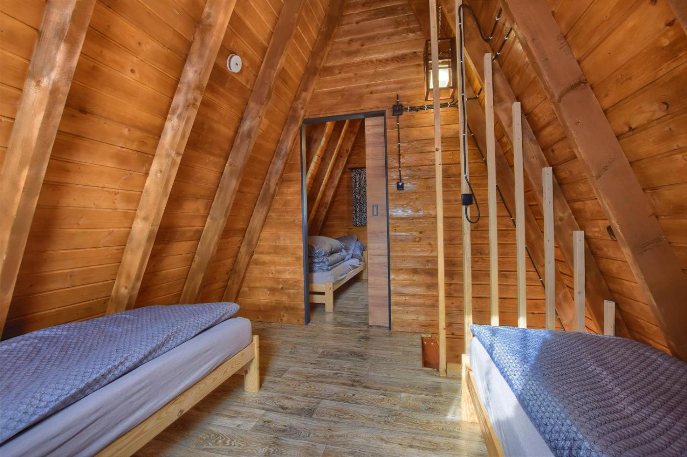 Domek z 2 sypialniami. This chalets standout feature is the sauna. This chalet is comprised of 1 living room, 2 separate bedrooms and 1 bathroom with a shower and a hairdryer. Guests will find a stovetop, a refrigerator, kitchenware and an oven in the fully equipped kitchen. The chalet also has a barbecue. Featuring a terrace with lake views, this chalet also offers a seating area and a flat-screen TV with streaming services. The unit offers 5 beds. Domek - 6 osobowy. Powierzchnia pokoju ok.: 60 mkw. ;
