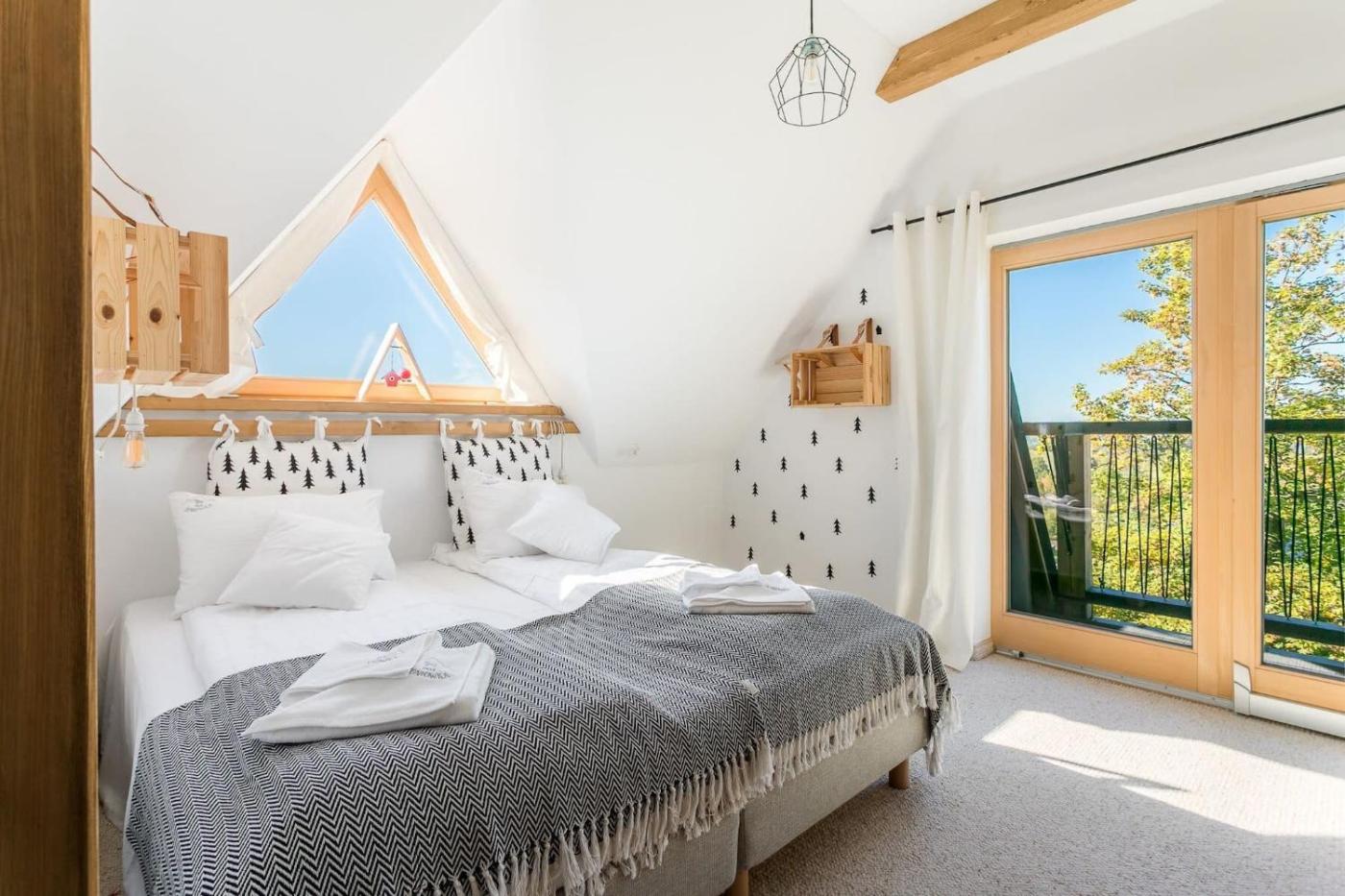 Domek z 5 sypialniami. The sauna and fireplace are the special features of this holiday home. This spacious holiday home comes with 1 living room, 5 separate bedrooms and 4 bathrooms with a shower and free toiletries. In the fully equipped kitchen, guests will find a stovetop, a refrigerator, a dishwasher and kitchenware. The holiday home features a flat-screen TV, a washing machine, a private entrance, a tea and coffee maker as well as mountain views. The unit has 13 beds. Dom wakacyjny - 16 osobowy. Powierzchnia pokoju ok.: 250 mkw.